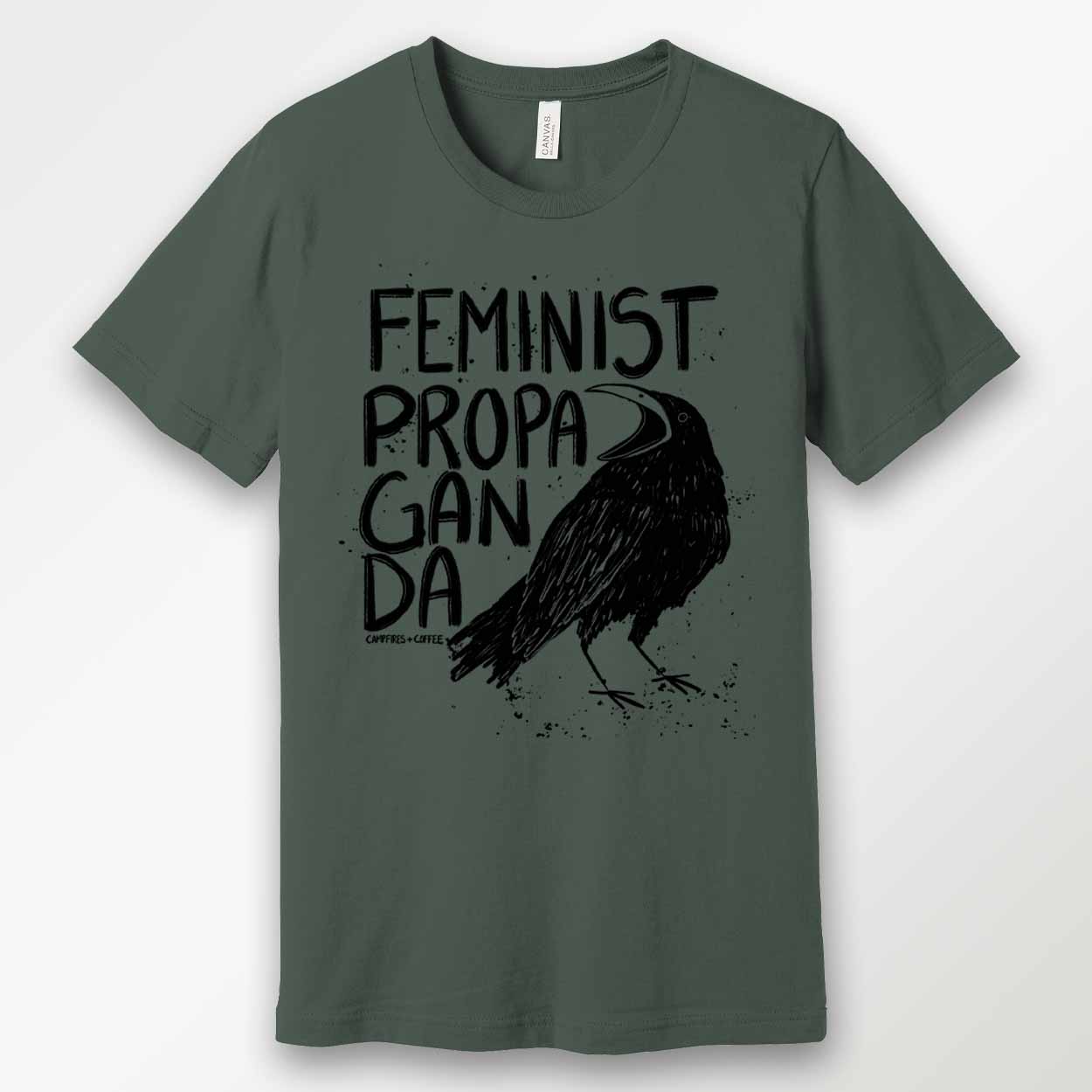 Gather 'round fellow equality advocates--it's time to show your support with this stylish Feminist Propaganda Crow Unisex T-Shirt! Crafted with a soft poly/cotton blend and heather autumn color, this comfy tee is finished off with a bold, black crow graphic and the words "feminist propaganda"--talk about a bold statement piece! Be proud and look good while doing it.