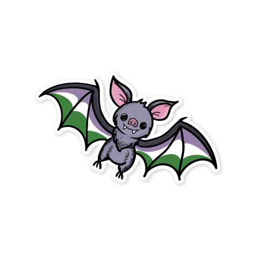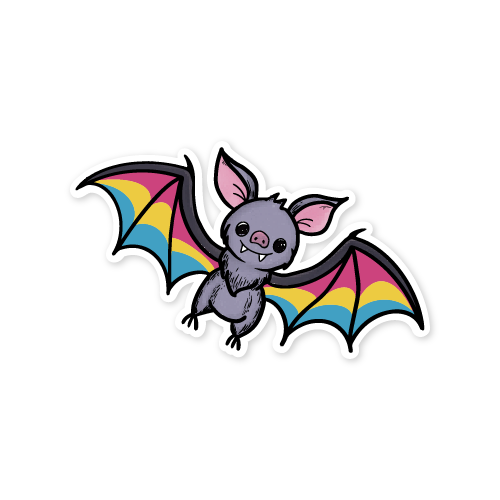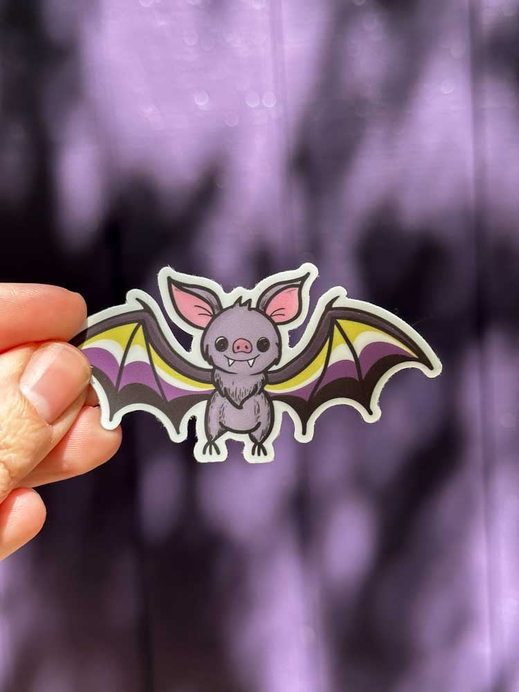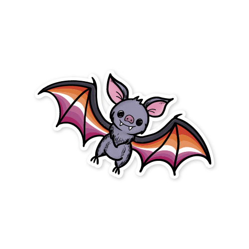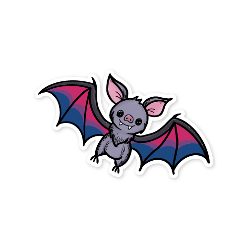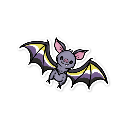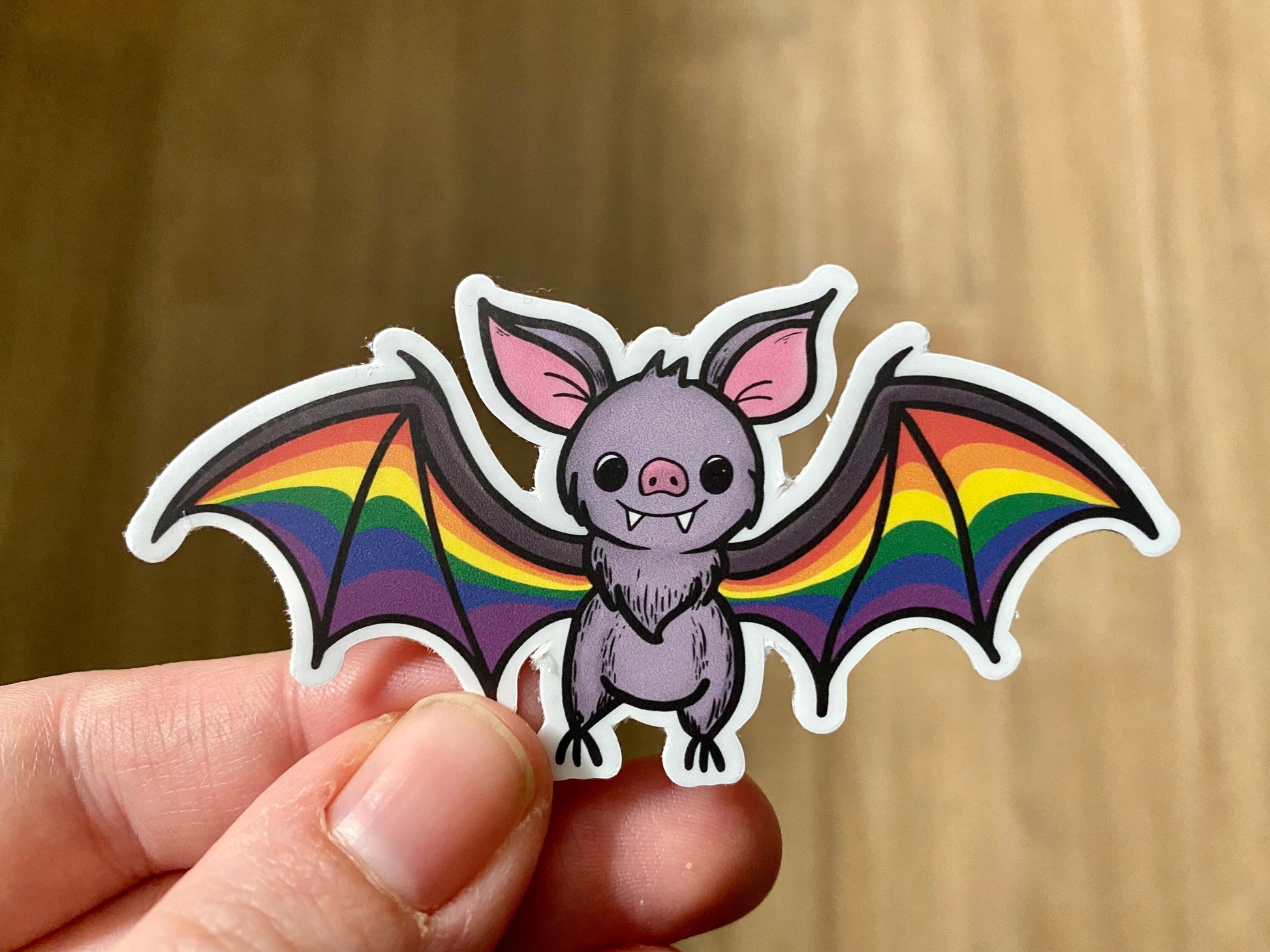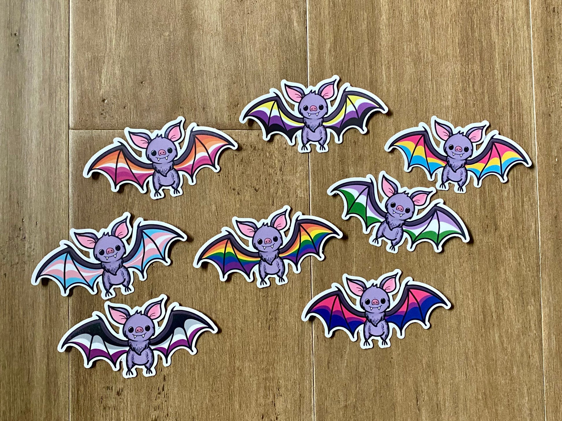 LGBT Pride stickers featuring a bat with wings in a rainbow of different color combinations. These stickers are waterproof! Perfect for showcasing your pride on your water bottle, notebook, or anything else.
