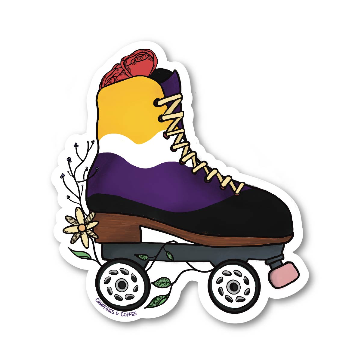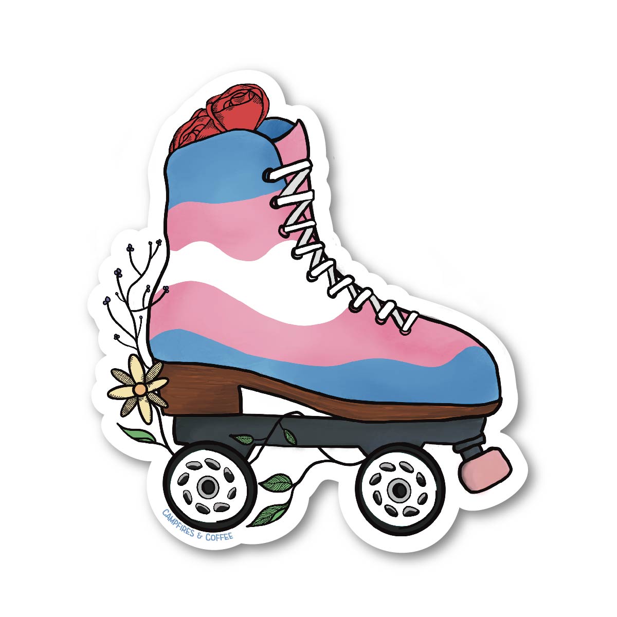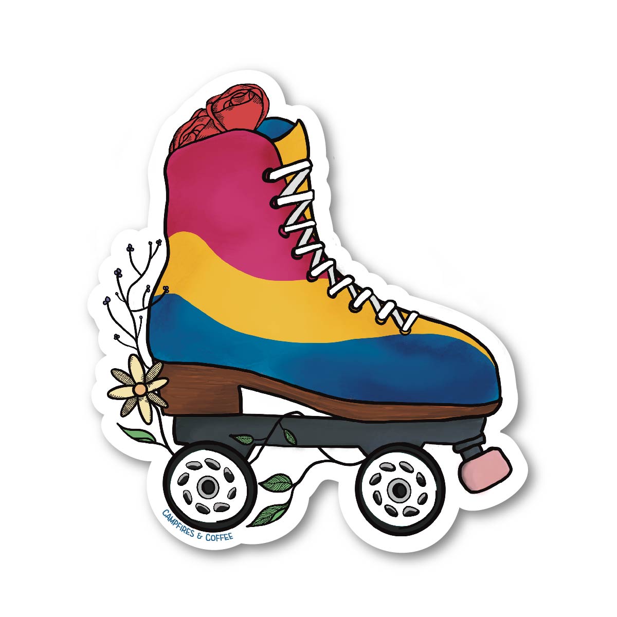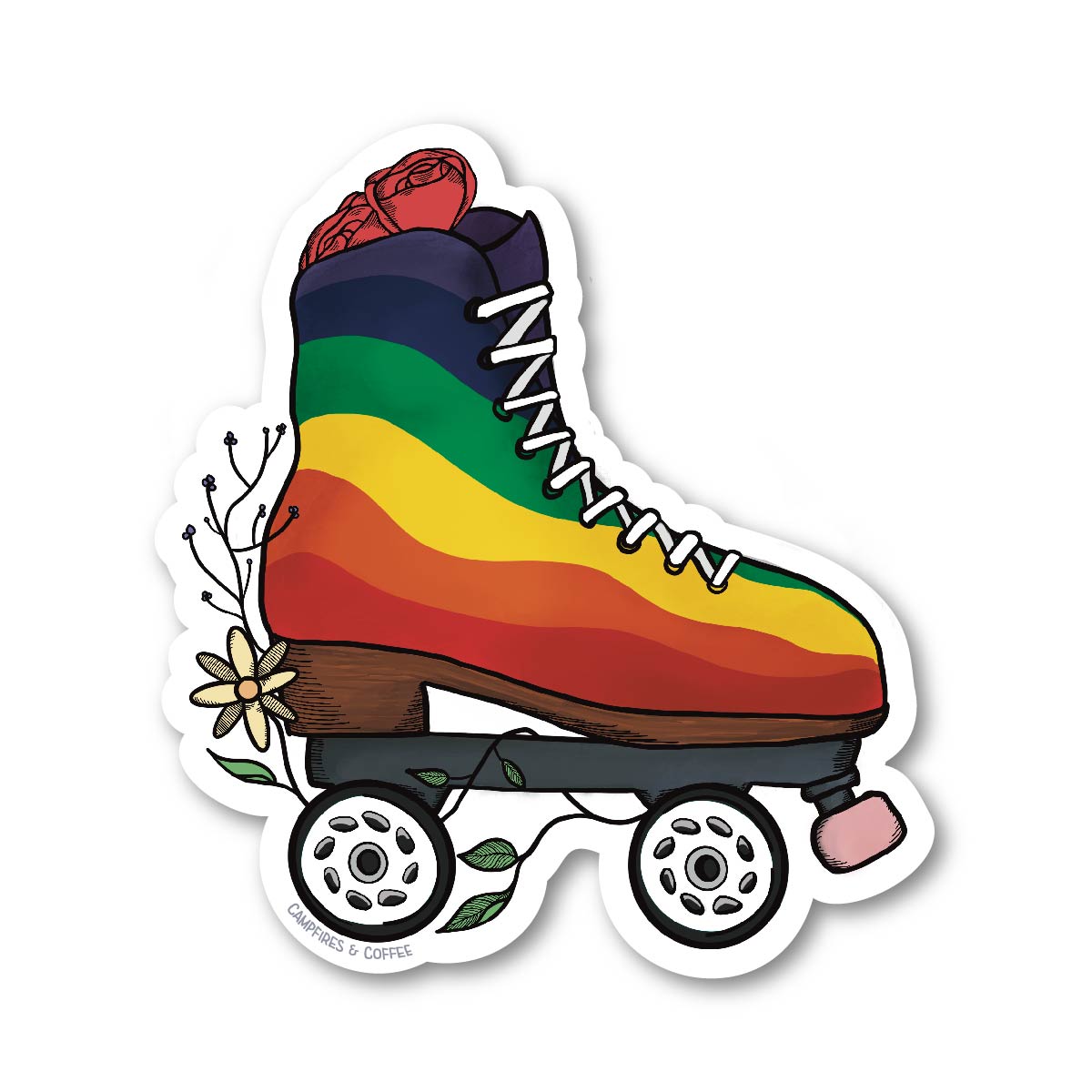 Roll into pride with this funky floral roller skate sticker! With colorful accents and the iconic colors of pride flags, show off your unique style with a touch of pride. Perfect for decorating your helmet, laptop, or water bottle. (Sticker only, skates not included).