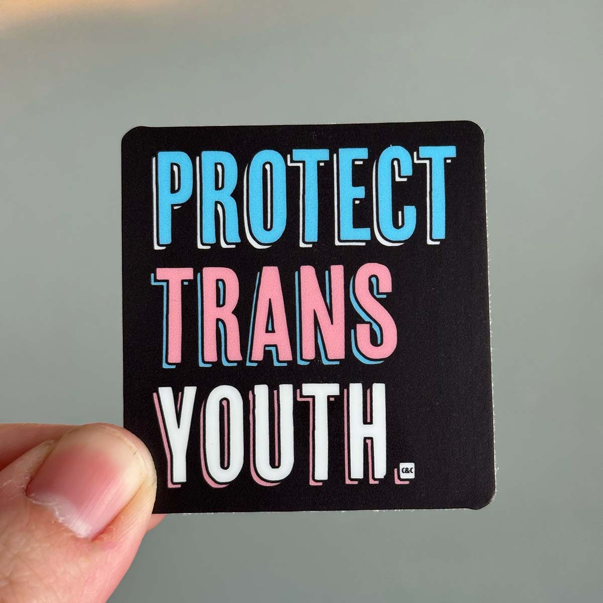 Show your support for trans youth with this stylish sticker! The durable laminated vinyl material ensures it won't fade or scratch off easily, making it the perfect way to make a statement. Show your allyship every day and Protect Trans Youth!