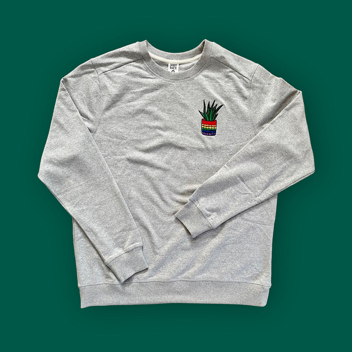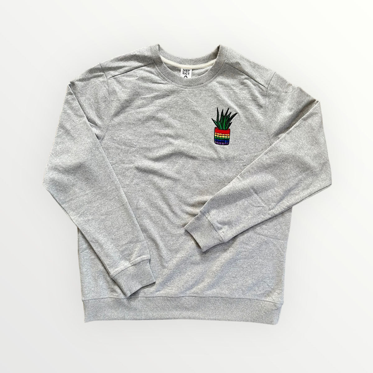 Show your love for the planet and your support for LGBTQ+ pride with this stylish crew neck sweatshirt. Made from 100% recycled fabric, this heather grey crewneck is adorned with embroidery on the front and a screen print on the back. Be fashionable and conscientious - wear your values proudly!