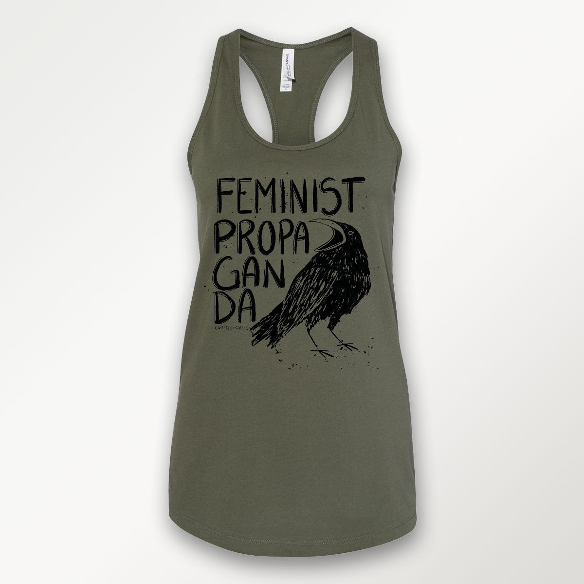 Unleash your inner rebel with our Feminist Propaganda Crow Racerback Tank Top. This tank features a fierce crow graphic and a feminine cut racerback, perfect for showcasing your fearless spirit. Join the feminist movement and make a statement in style!