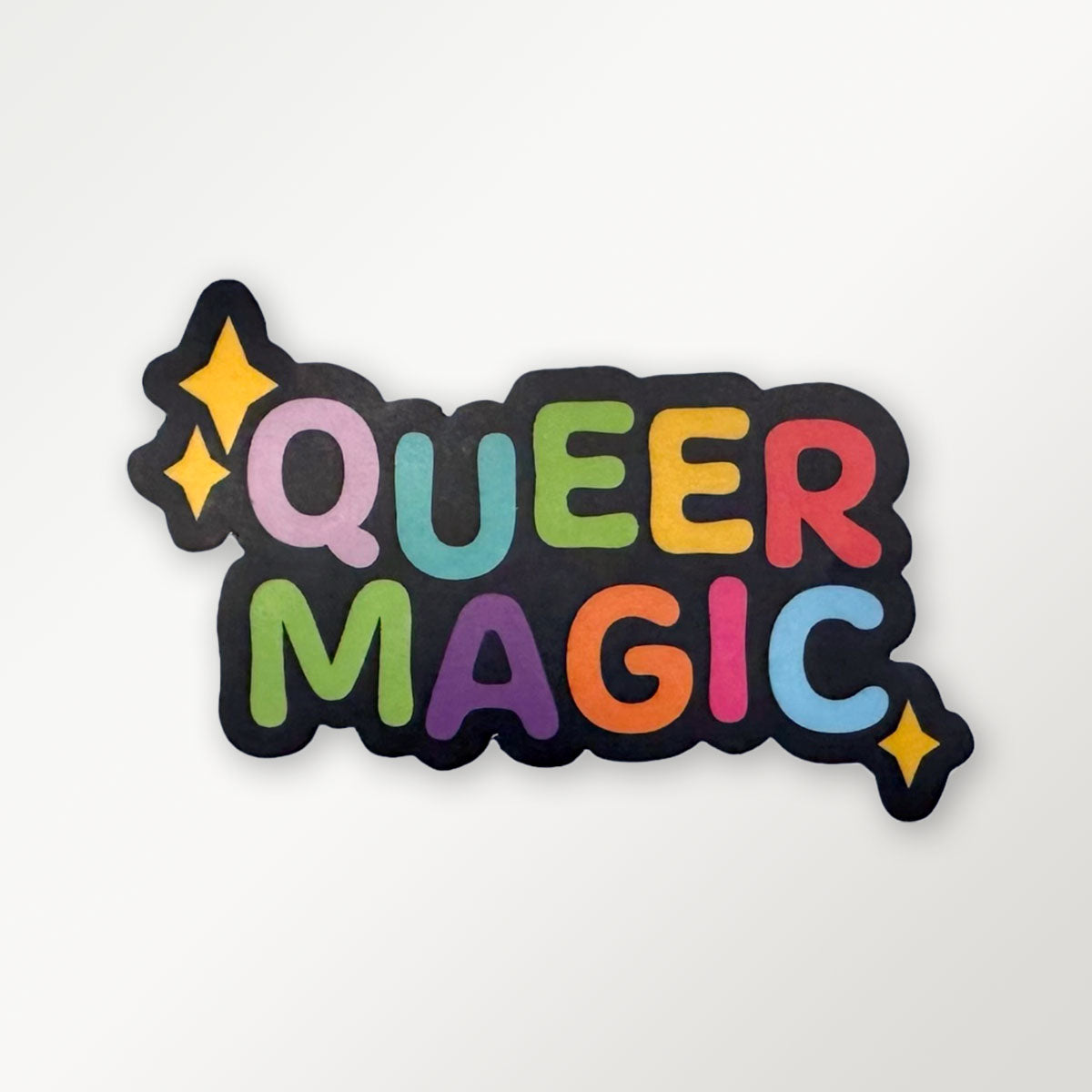 Express yourself and show the world you're queer and magical with this cool sticker! Featuring the colorful words 'Queer Magic' and a star accents, you can choose either a black or white background to make sure it looks just right. Show 'em who you are and own your power!